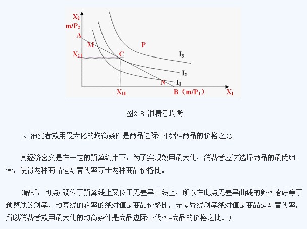 1、滿足效用最大化的商品組合必定位于預(yù)算線與無差異曲線相切的點(diǎn)上。