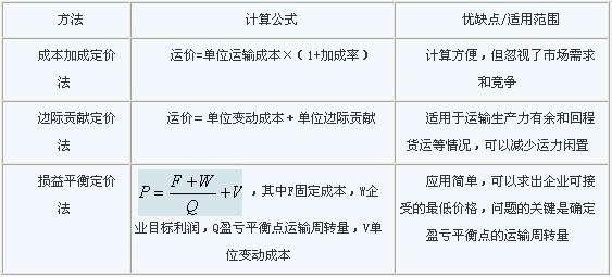 1.成本導(dǎo)向定價(jià)法:以運(yùn)輸成本為基礎(chǔ)定價(jià)