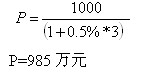 例:一張為期3個月的1000萬元票據(jù),市場利率為0.5%(不計復(fù)利),該票據(jù)交易價格:
