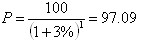 例:假若面額為100元的債券,不支付利息,貼現(xiàn)出售,期限1年,收益率3%,到期一次歸還,則該債券的價格為: