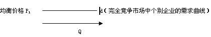 2、個(gè)別企業(yè)的需求曲線是一條平行于橫軸的水平線(因?yàn)閭€(gè)別企業(yè)無法決定市場價(jià)格,只能按照既定的價(jià)格,也就是整個(gè)行業(yè)供給和需求確定的價(jià)格出售產(chǎn)品)。 P