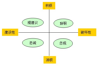 3.忠誠(chéng)(建設(shè)性和消極的):雖然對(duì)工作不滿,但仍然盡力維護(hù)組織的利益和形象,