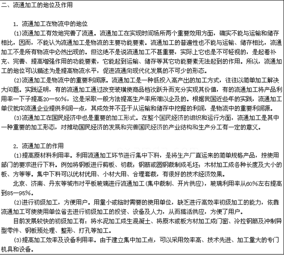 (1)流通加工的對(duì)象是進(jìn)人流通過(guò)程的商品,具有商品的屬性。以此來(lái)區(qū)別多環(huán)節(jié)生產(chǎn)加工中的一環(huán)。流通加工的對(duì)象是商品而生產(chǎn)加工對(duì)象不是最終產(chǎn)品,而是原材料;零配件、半成品。