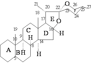 (2)異螺甾烷醇型 自然界中占絕大多數(shù)。薯蕷皂苷元是異螺甾烷醇的代表,是合成甾體激素和甾體避孕藥的重要原料。