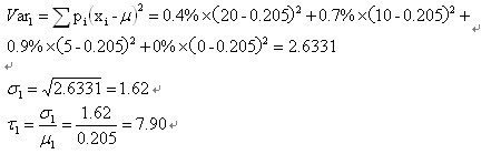 藍(lán)貓的損失的方差、標(biāo)準(zhǔn)差和離散系數(shù):