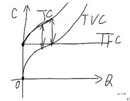 (3)總可變成本曲線從原點(diǎn)出發(fā),之后隨產(chǎn)量增加而上升。