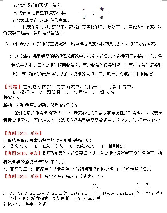 2013年經(jīng)濟(jì)師《初級(jí)金融》預(yù)習(xí)1(3):弗里德曼的貨幣需求理論
