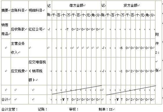 4.資料:2010年2月2日企業(yè)銷售甲商品給紅紅公司,價款60000元,增值稅10200元,已按照總價法入賬。買方在10天以后,20天以內(nèi)付款,按合同條款享受1%的現(xiàn)金折扣(假設計算折扣時不考慮增值稅),憑證號63號,原始憑證共2張。