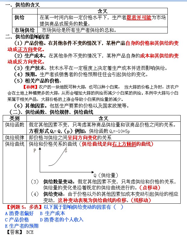 2013年經(jīng)濟(jì)師《中級經(jīng)濟(jì)基礎(chǔ)》預(yù)習(xí)1(2):市場供給