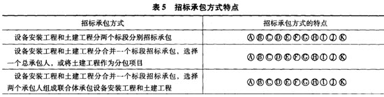 表5招標(biāo)承包方式特點(diǎn)