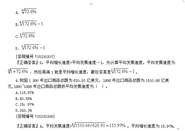 1.(2005、2008年)平均增長(zhǎng)速度與平均發(fā)展速度的數(shù)量關(guān)系是( )。