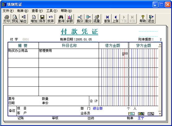 1.增加憑證。記賬憑證的內(nèi)容一般包括兩部分:一是憑證頭部分;二是憑證正文部分。如果輸入的會(huì)計(jì)科目有輔助核算要求,則應(yīng)輸入輔助核算內(nèi)容。