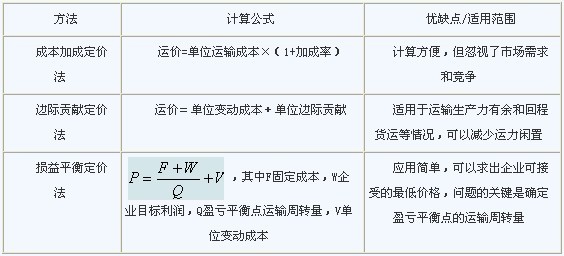 1.成本導向定價法:以運輸成本為基礎定價
