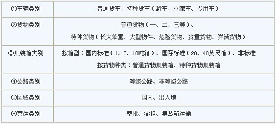 表4-6 貨運(yùn)計(jì)價(jià)類別的劃分
