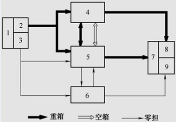 1-進(jìn)站口;2-重箱;3-零擔(dān)貨;4-集裝箱堆場(chǎng);