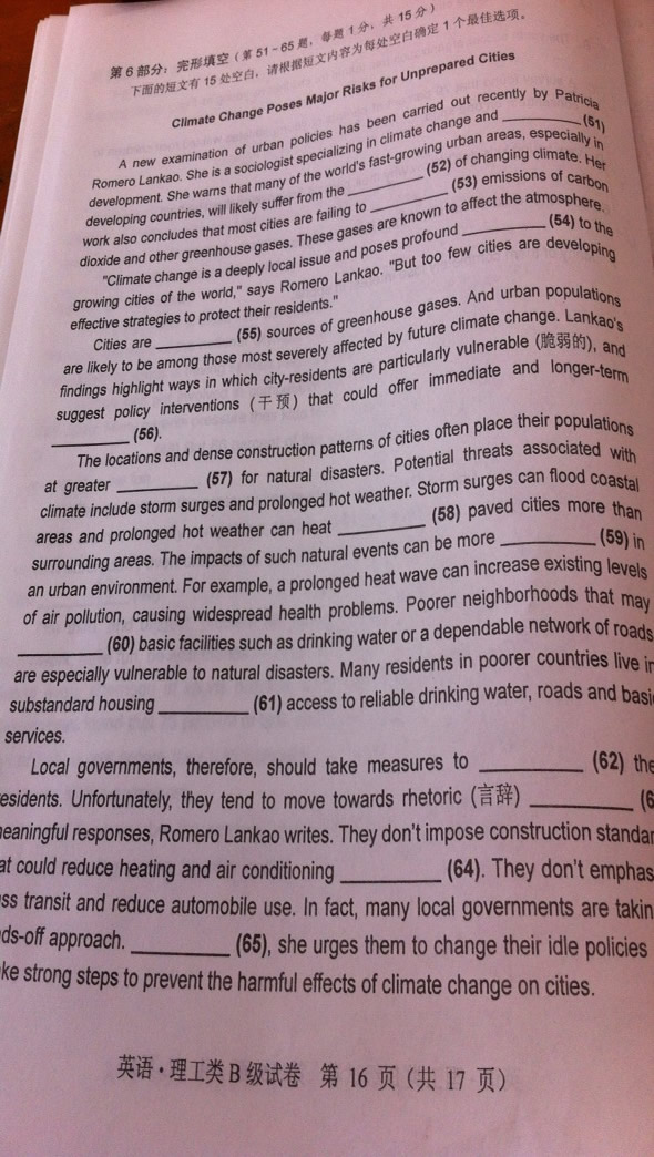 - 職稱英語綜合c完形填空真題及答案2017-07-03