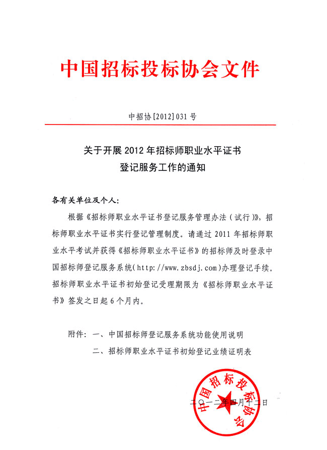 2012年招標(biāo)師職業(yè)水平證書登記服務(wù)工作的通知