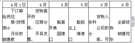 對(duì)于A類的3種產(chǎn)品,安科公司實(shí)行了連續(xù)性檢查策略,每天檢查庫(kù)存情況,隨時(shí)掌握準(zhǔn)確的庫(kù)存信息,進(jìn)行嚴(yán)格的控制,在滿足客戶需要的前提下維持盡可能低的經(jīng)常量和安全庫(kù)存量,通過與國(guó)外供應(yīng)商的協(xié)商,并且對(duì)運(yùn)輸時(shí)間做了認(rèn)真的分析,算出了該類產(chǎn)品的訂貨前置期為2個(gè)月(也就是從下訂單到貨物從安科公司的倉(cāng)庫(kù)發(fā)運(yùn)出去,需要2個(gè)月的時(shí)間)。即如果預(yù)測(cè)在6月份銷售的產(chǎn)品,應(yīng)該在4月1日下訂單給供貨商,才能保證在6月1日可以出庫(kù)。其訂單的流程見下表。
