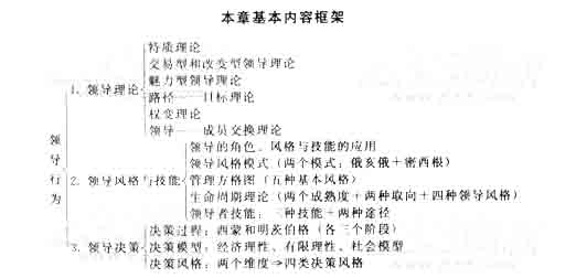 本章主要講述領(lǐng)導(dǎo)理論、領(lǐng)導(dǎo)風(fēng)格和技能以及相關(guān)的領(lǐng)導(dǎo)決策模型和風(fēng)格。本章的重點(diǎn)是影響領(lǐng)導(dǎo)行為的若干理論的內(nèi)容、領(lǐng)導(dǎo)行為的風(fēng)格特點(diǎn)以及決策,難點(diǎn)是這些領(lǐng)導(dǎo)理論在管理中的應(yīng)用。