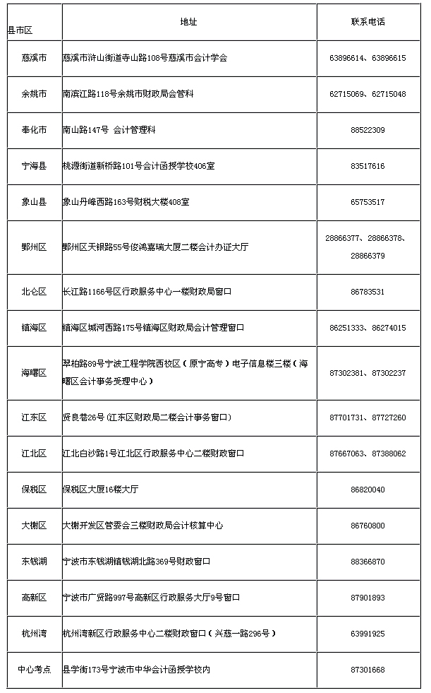 2014年上半年寧波會計從業(yè)考試資格審核點地址及聯(lián)系方式