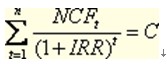 計(jì)算內(nèi)含報(bào)酬率(以IRR表示)的公式如下: