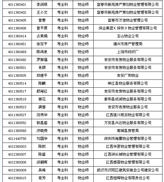 2.2012年度物業(yè)管理師資格考試江西考區(qū)合格人員名單