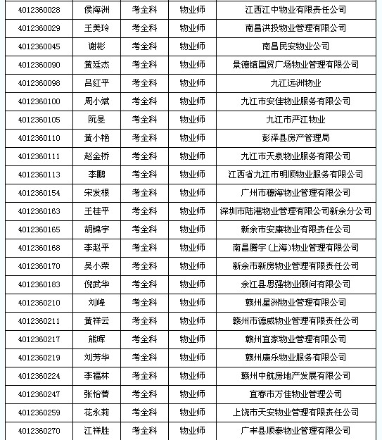 2012年江西物業(yè)管理師合格人員名單
