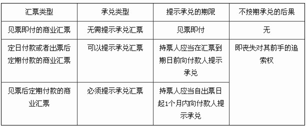 提示承兌是指持票人向付款人出示匯票,并要求付款人承諾付款的行為。因匯票付款日期的形式不同,提示承兌的期限也不一樣。