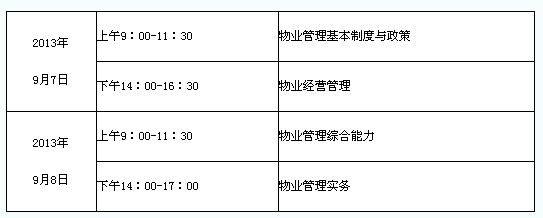 根據(jù)人力資源和社會(huì)保障部人事考試中心《關(guān)于做好2013年度全國(guó)物業(yè)管理師資格考試考務(wù)工作的通知》(人考中心函[2013]26號(hào))精神,為做好2013年度我省全國(guó)物業(yè)管理師資格考試工作,現(xiàn)將有關(guān)事項(xiàng)通知如下: