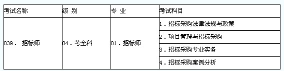 招標(biāo)師職業(yè)水平考試設(shè):《招標(biāo)采購(gòu)法律法規(guī)與政策》、《項(xiàng)目管理與招標(biāo)采購(gòu)》、《招標(biāo)采購(gòu)專業(yè)實(shí)務(wù)》和《招標(biāo)采購(gòu)案例分析》4個(gè)科目。