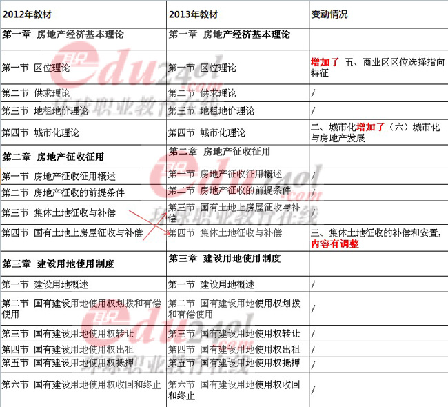 2013年經濟師房地產經紀專業(yè)知識與實務(中級)的教材千呼萬喚終于出版了,知道大家急迫的心情,所以拿到教材的環(huán)球網校的小編們第一時間進行了教材的對比分析,希望可以對大家的復習有所幫助。