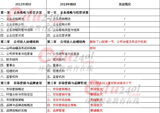 2013年經(jīng)濟(jì)師工商管理專業(yè)知識(shí)與實(shí)務(wù)(中級(jí))的教材千呼萬喚終于出版了,知道大家急迫的心情,所以拿到教材的環(huán)球網(wǎng)校的小編們第一時(shí)間進(jìn)行了教材的對(duì)比分析,希望可以對(duì)大家的復(fù)習(xí)有所幫助。