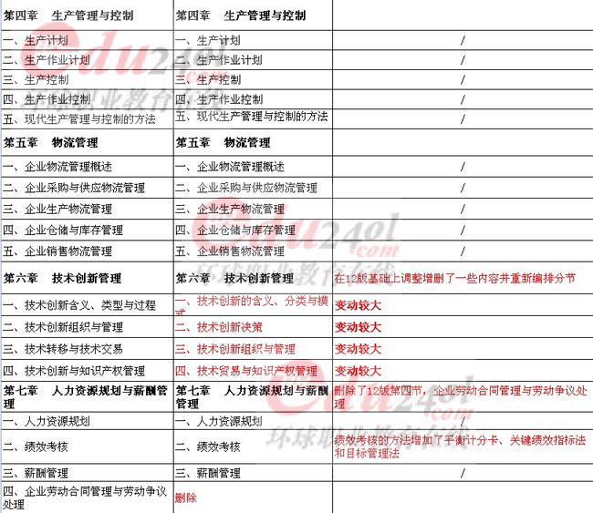 2013年經(jīng)濟(jì)師考試《中級(jí)工商》新版教材變動(dòng)揭秘