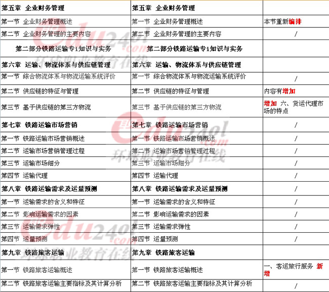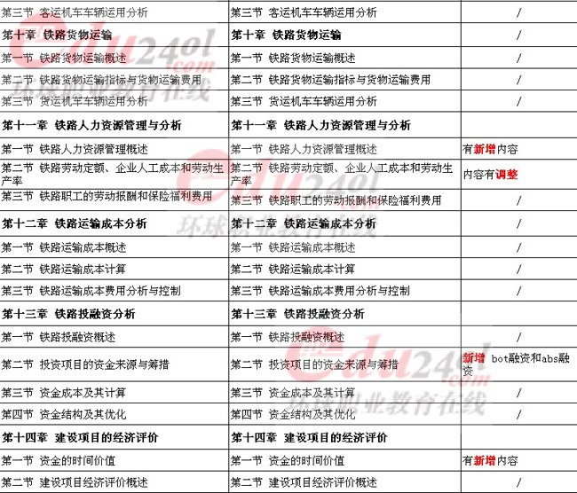 2013年經(jīng)濟(jì)師考試《中級(jí)鐵路》新版教材變動(dòng)揭秘