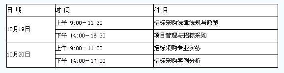 2013年度招標(biāo)師職業(yè)水平考試定于10月19日至20日舉行,具體考試時(shí)間和考試科目如下: