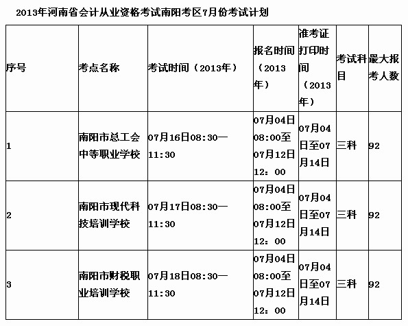 2013年7月河南南陽會計從業(yè)考試報名到7月12日止