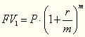 設(shè):本金為P,年利率為r,每年的計(jì)息次數(shù)為m,則一年末的本息和為: