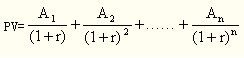 Ai表示第i年末的現(xiàn)金流量(Ai相當(dāng)于FVi),i=1,2,3…,n。