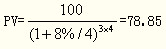 例:如果三年后可收到100元,貼現(xiàn)率為8%,且一季計(jì)息一次,則現(xiàn)在值多少錢?