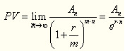 如果式中m趨于∞,則(1+r/m)nm趨于ern,因此,如果連續(xù)復(fù)利,那么現(xiàn)值的計(jì)算公式為: