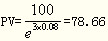 例:如果三年后可收到100元,貼現(xiàn)率為8%,連續(xù)復(fù)利,則現(xiàn)在值多少錢?