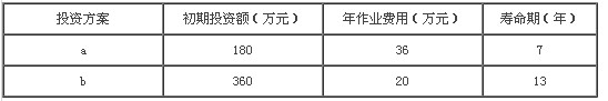 投資方案初期投資額(萬元)年作業(yè)費(fèi)用(萬元)壽命期(年)