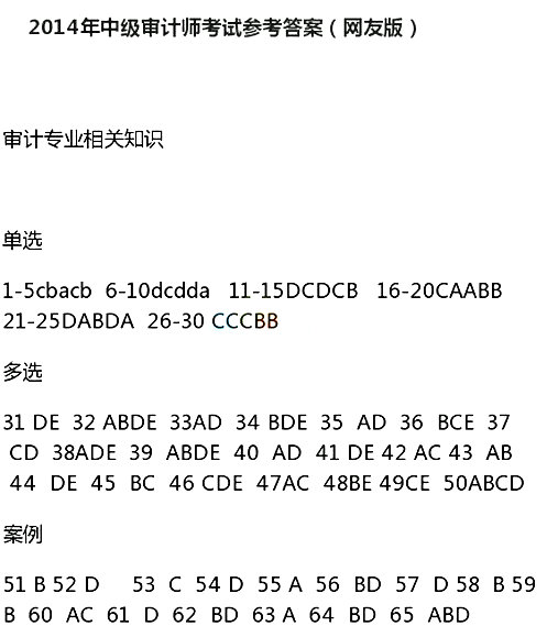 2014中級審計師考試《專業(yè)相關知識》答案(網友版)