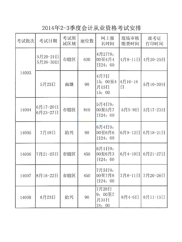 根據(jù)韶關(guān)市財政局《2014年2-3季度廣東韶關(guān)會計從業(yè)資格考試安排》得知,2014年2-3季度廣東韶關(guān)會計從業(yè)資格考試報名時間如下: