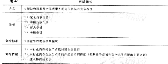 【解析】本題考查市場(chǎng)結(jié)構(gòu)的概念。市場(chǎng)結(jié)構(gòu)就是指某種產(chǎn)品或服務(wù)的競(jìng)爭(zhēng)狀態(tài)和競(jìng)爭(zhēng)程度。