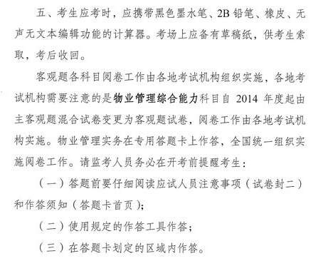 根據(jù)《關于做好2014年度物業(yè)管理師資格考試考務工作的通知》獲悉: