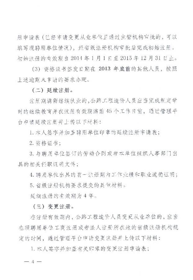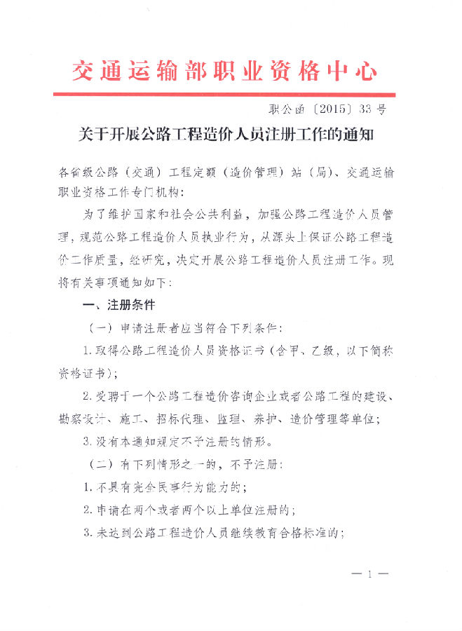 2015年公路工程造價(jià)人員注冊工作的通知