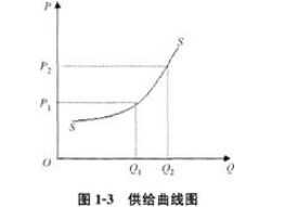 在圖1―3中,兩軸之間的曲線SS即為供給曲線。從圖中可以看到,當(dāng)價(jià)格從P1上升到P2時(shí),供給量從Q1增加到Q2,即供給曲線向上傾斜。