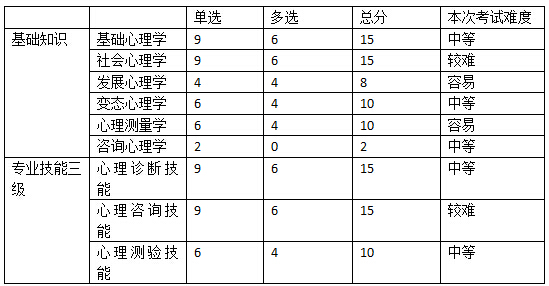 《三級》的3個章節(jié)中,分值所占比例差不多,心理診斷和心理咨詢技能稍微多一些,對于3章知識的考察力度相差無幾。