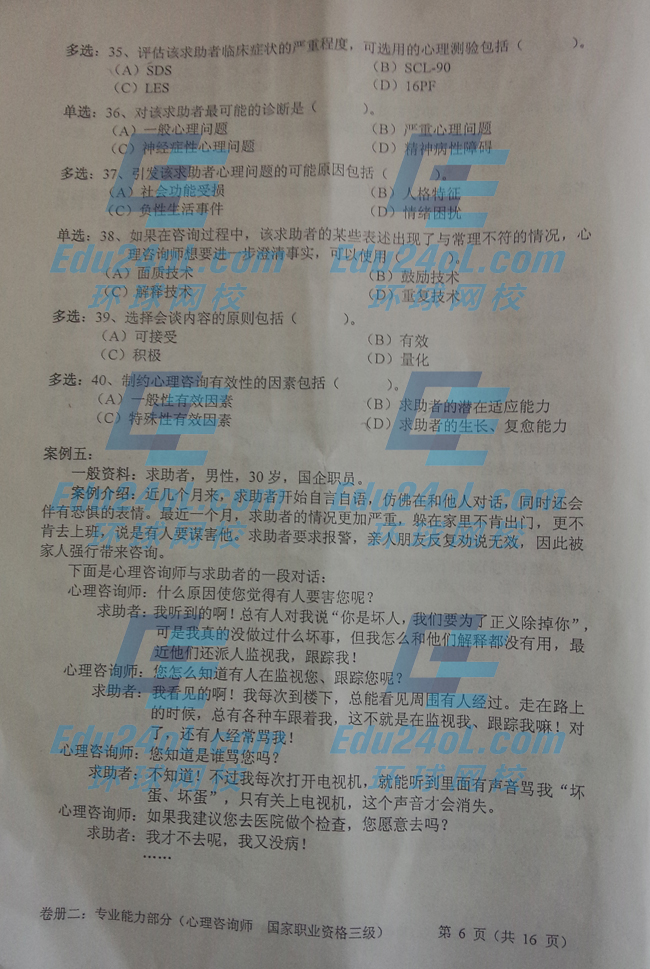 摘要 2014年11月三級(jí)心理咨詢師考試專業(yè)技能真題,由環(huán)球網(wǎng)校心理咨詢師頻道獨(dú)家整理發(fā)布,如需轉(zhuǎn)載請(qǐng)注明出處!